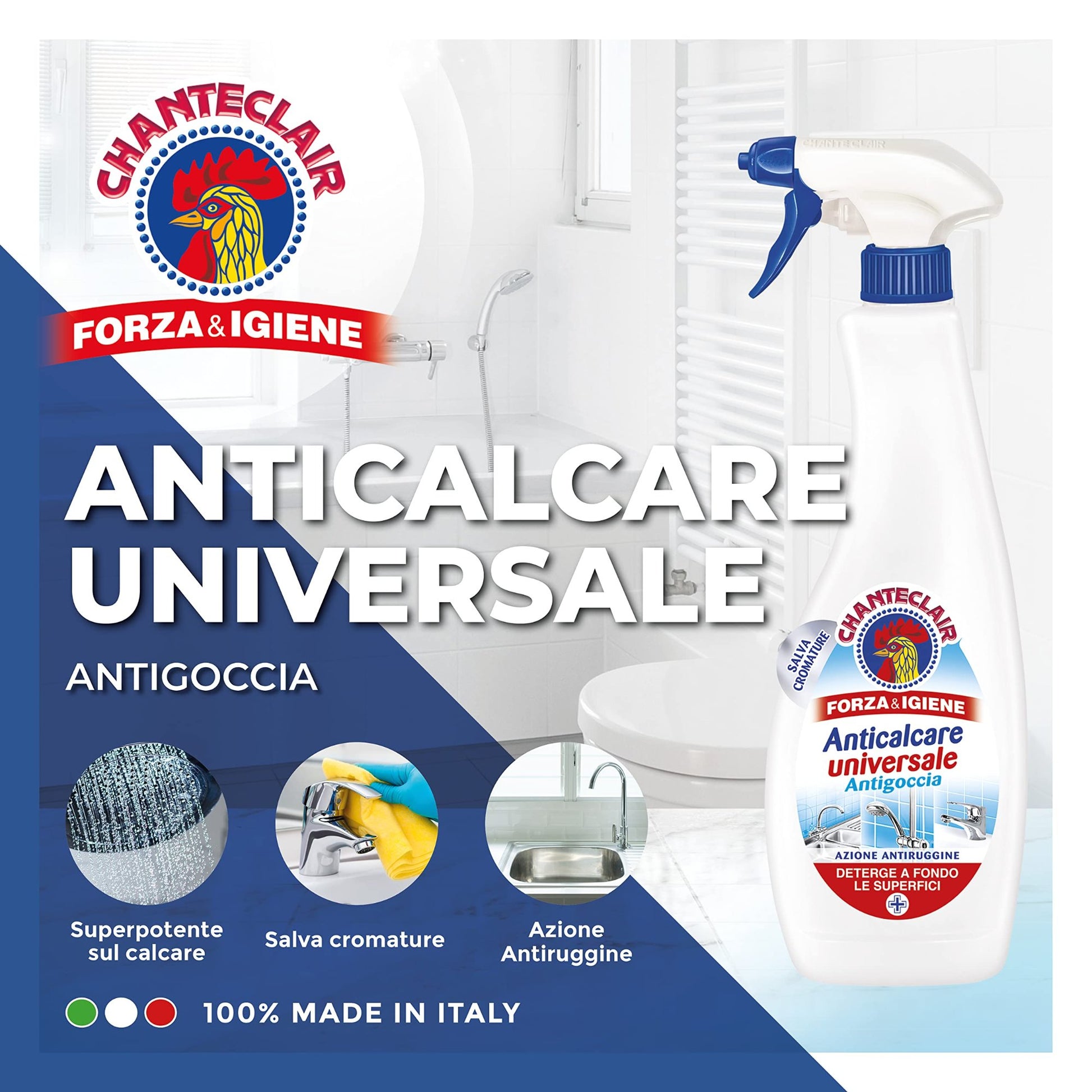 L’Anticalcare Universale Chanteclair è superpotente sul calcare, anche più ostinato e, se usato abitualmente, ne previene il ridepositarsi.