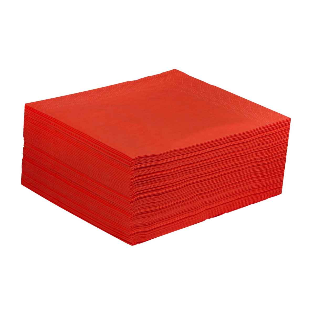 Tovaglioli Corona rossi monouso monovelo 33 x 33 cm di carta rossa ovattata. Spessi e super morbidi per una rapida asciugatura. In pura cellulosa resistente e doppia.