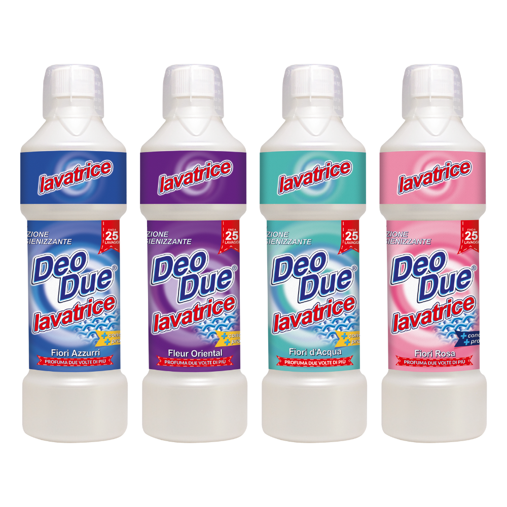 DEO DUE Detersivo Igienizzante per bucato rimuove le macchie già alle basse temperature rispettando i tessuti e proteggendo i colori. È un eccezionale detergente liquido per bucato a mano e in lavatrice realizzato con l'esclusivo Nanocaps Technology System.