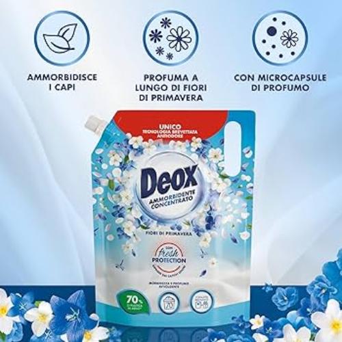 Gli Ammorbidenti Concentrati Deox formato Ricarica rendono i tessuti morbidi e profumati grazie alle preziose fragranze scelte. La formula anti-odore potenzia l’efficacia contro i cattivi odori lasciando spazio ad un intenso profumo di pulito che dura a lungo.