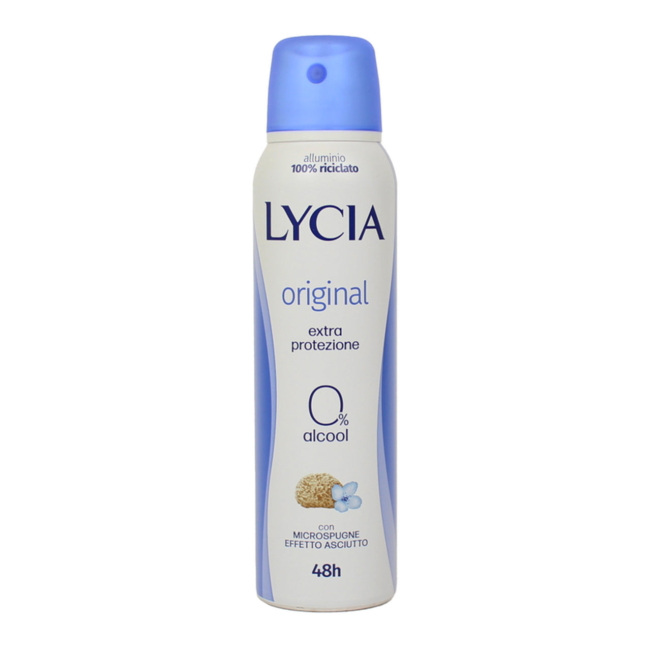 Lycia Deodorante Spray Original offre una formula extra efficace senza Alcool per una pelle asciutta e protetta fino a 48h, grazie alle speciali Microspugne effetto asciutto anche nelle giornate più impegnative. 150 ml.