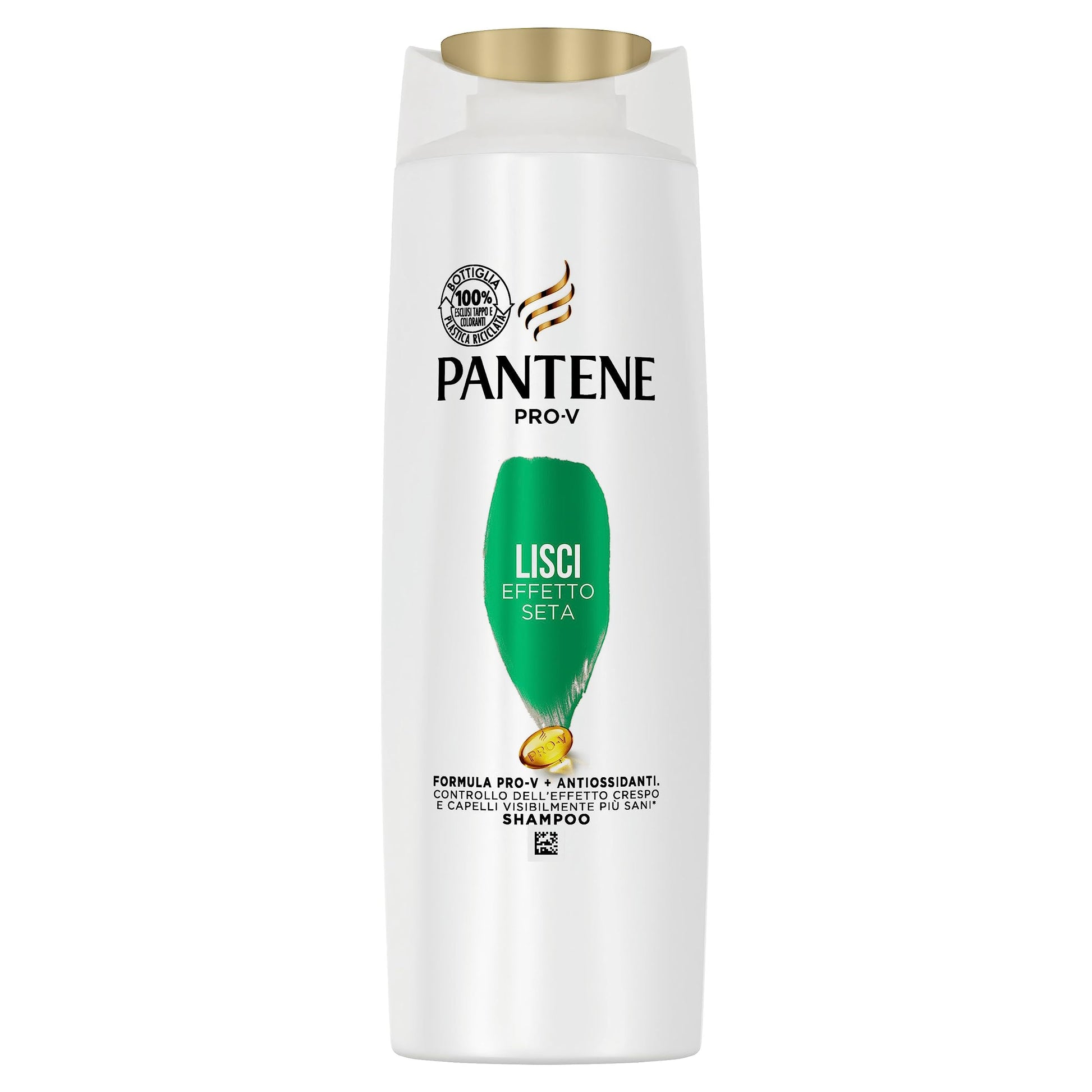 Shampoo Pantene Pro-V Lisci Effetto Seta Con La Miscela Di Nutrienti Pro-V: Alimenta i capelli con i Nutrienti attivi Pro-V per rafforzarli dall'interno. Dona morbidezza come la seta e controllo dell'effetto crespo, per capelli tendenti al crespo o disidratati.