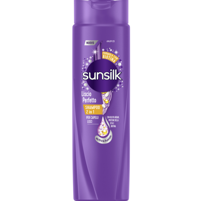 Lo Shampoo Sunsilk Liscio Perfetto 2-IN-1 contiene la nuova Formula Active Fusion arricchita con un magico trio di ingredienti: